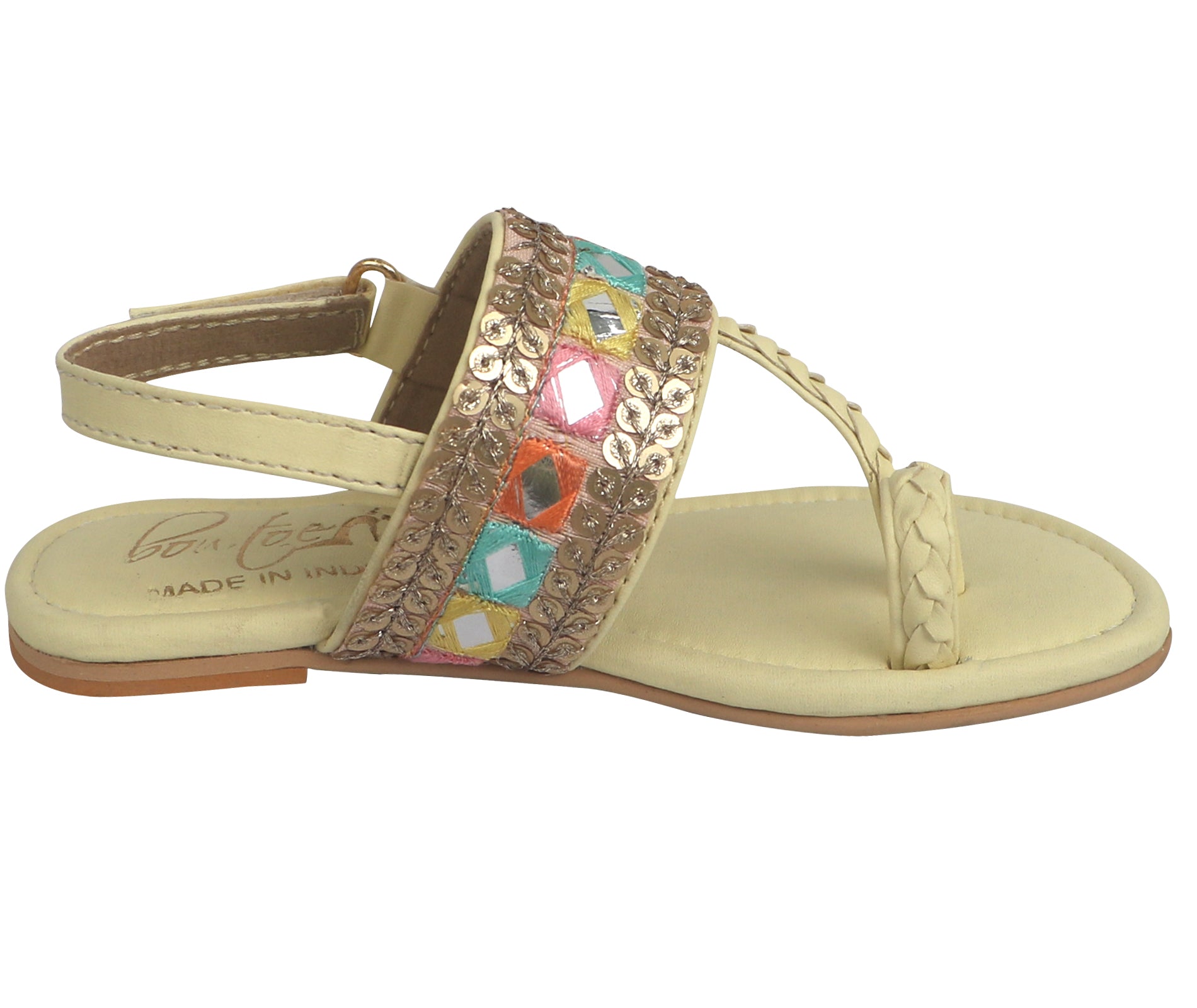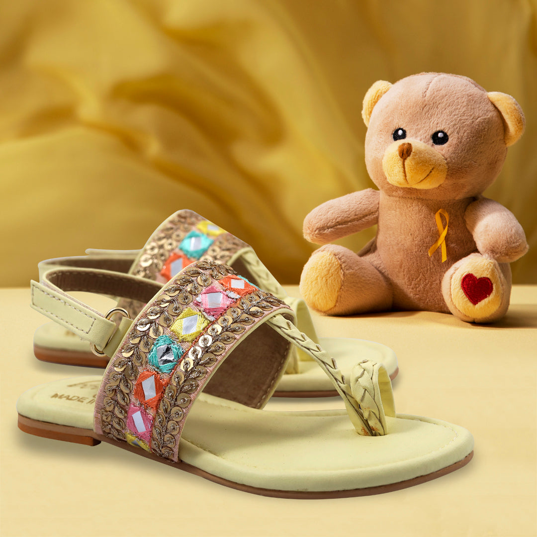 Adorable and cruelty-free, these kids’ Kolhapuri sandals come with colorful pompoms for a playful touch. Made in non-leather, they’re soft, lightweight, and easy on tiny feet – perfect for all-day comfort and style.